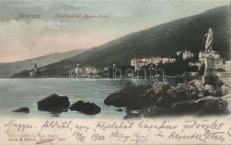 Abbazia with Maria statue https://www.darabanth.com/de/130-Fernauktion/130.0/Ansichtskarten/~509/Abbazia-with-Maria-statue~II368057