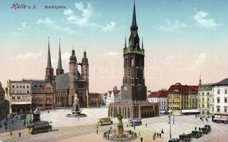 Halle market square with Hotel Börse and trams https://www.darabanth.com/de/130-Fernauktion/130.0/Ansichtskarten/~762/Halle-market-square-with-Hotel-Borse-and-trams~II369409