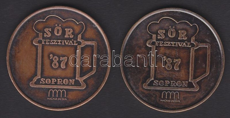 1987. Soproni Sör fesztivál zseton (2x) T:2 https://www.darabanth.com/de/130-Fernauktion/130.0/Numismatik/~873/1987-Soproni-Sor-fesztival-zseton-2x-T2~II369087