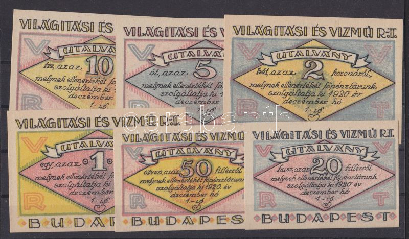 Beschreibung: Budapest 1920. "Világítási és Vízmű R.T." 20f, 50f, 1K, 2K, 5K, 10K T:I