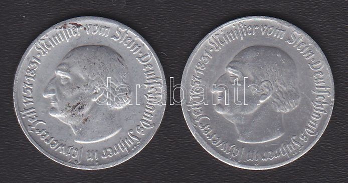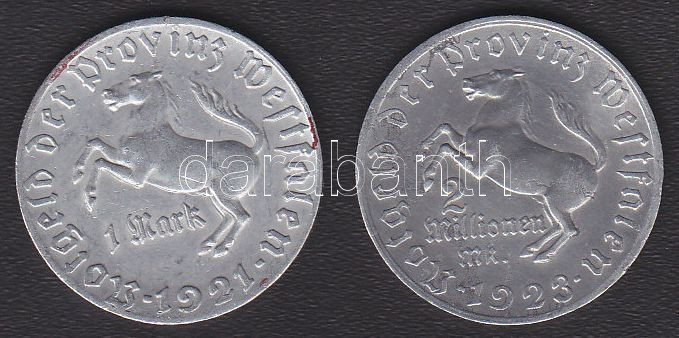 Németország/Vesztfáliai tartomány 1921. 1M + 1923. 2MM alumínium szüks... https://www.darabanth.com/de/130-Fernauktion/130.0/Numismatik/~873/NemetorszagVesztfaliai-tartomany-1921-1M-plus-1923-2MM-aluminium-szuksegpenzek-T3~II367216