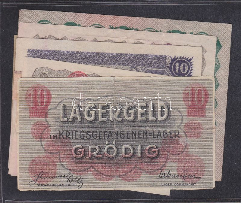 Beschreibung: Ausztria 1919-1922. 50pf, 2K, 10K, 20K, 100K + Grödig Lagergeld 10 Heller T:II+, II,II-