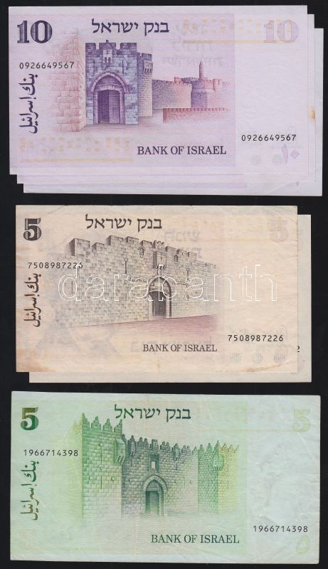 Izrael 1973-1978. 5L (3x) + 10L (3x) T:vegyes https://www.darabanth.com/de/130-Fernauktion/130.0/Numismatik/~874/Izrael-1973-1978-5L-3x-plus-10L-3x-Tvegyes~II368851