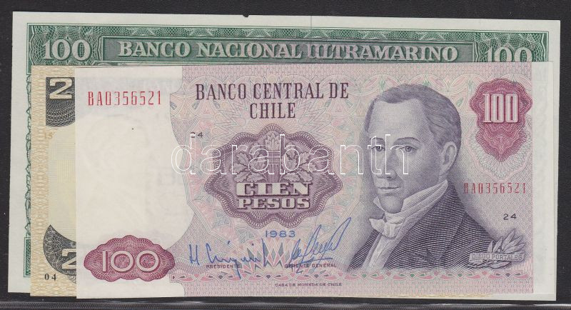 Beschreibung: Mozambik 1961.03.27. 100Esc vízjel:címer (nagyon kis papírhiány) + Chile 1983. 100P + Bolívia 1986.11.28. 2B T:I