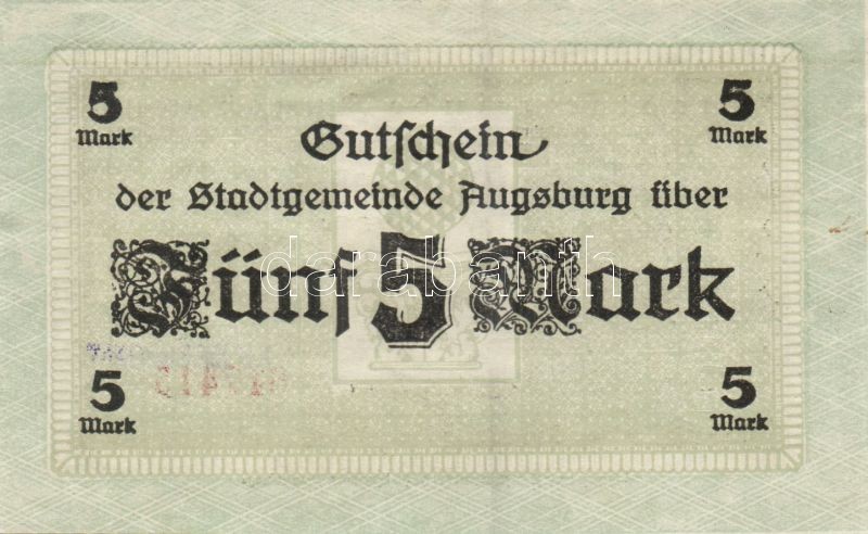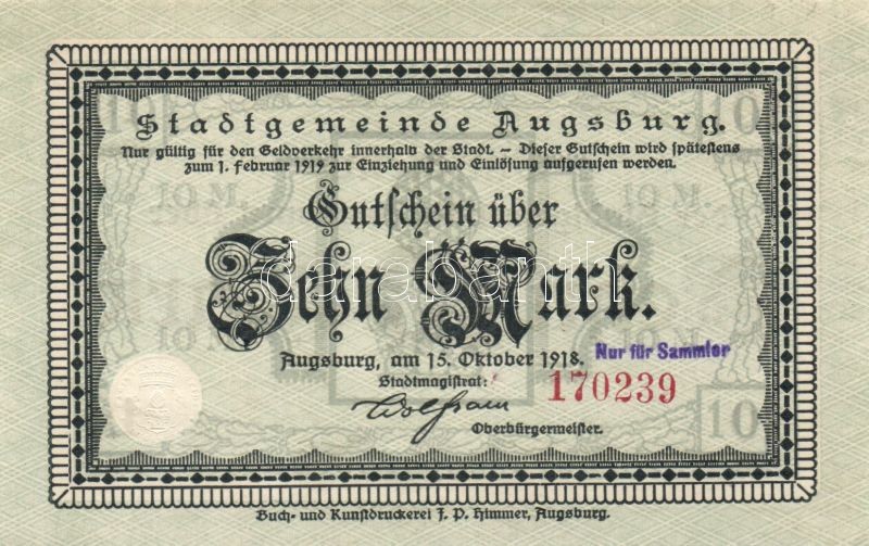 Beschreibung: Német Birodalom/Császárság/Augsburg 1918.10.15. 5M, 10M hivatalos érvénytelenítéssel T:I,I-