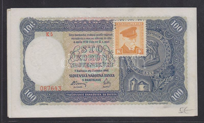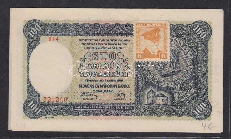 Szlovákia 1940. 100K (4x) T:I https://www.darabanth.com/de/130-Fernauktion/130.0/Numismatik/~874/Szlovakia-1940-100K-4x-TI~II368071