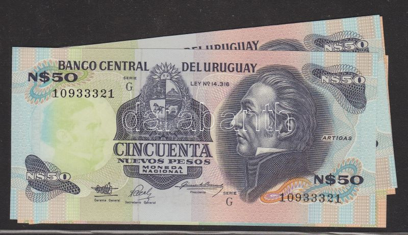 Uruguay 1989. 50P "G" (3x) + 100P "G" (3x) T:I https://www.darabanth.com/de/130-Fernauktion/130.0/Numismatik/~874/Uruguay-1989-50P-G-3x-plus-100P-G-3x-TI~II369942