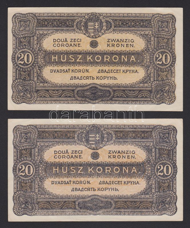 Beschreibung: 1920. 20K (2x) T:II+ kis saroktörés