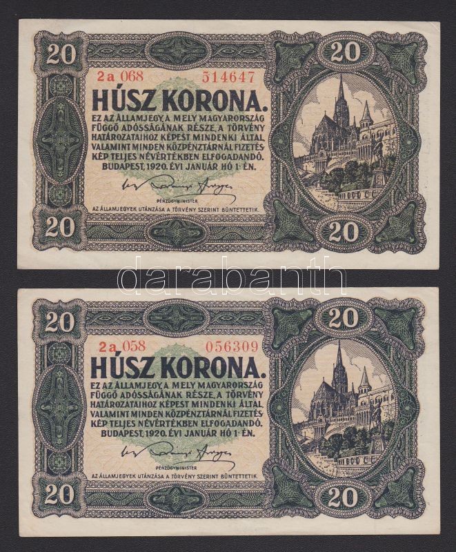 1920. 20K (2x) T:II+ kis saroktörés https://www.darabanth.com/de/130-Fernauktion/130.0/Numismatik/~875/1920-20K-2x-TIIplus-kis-saroktores~II343503