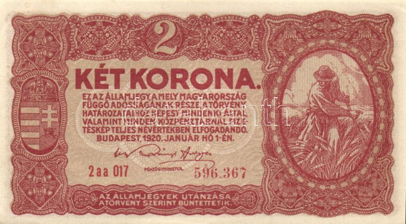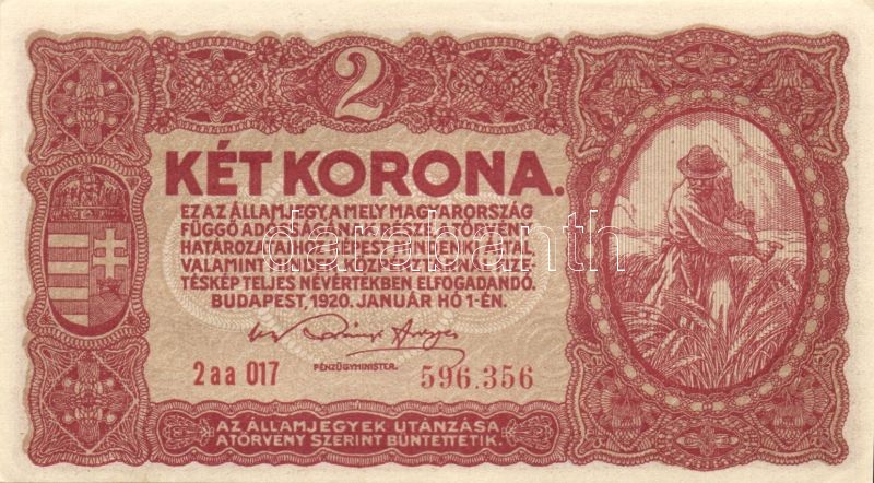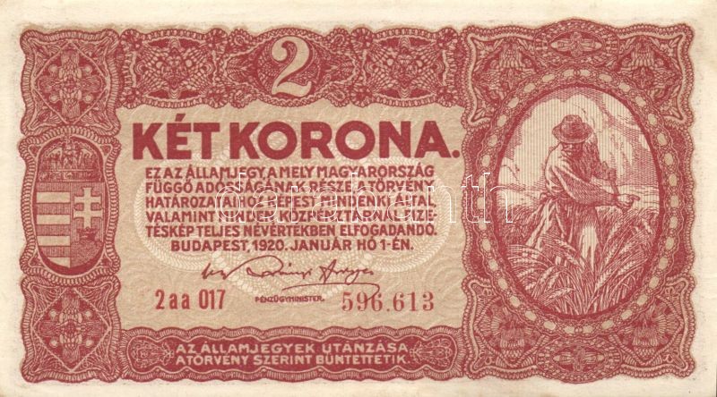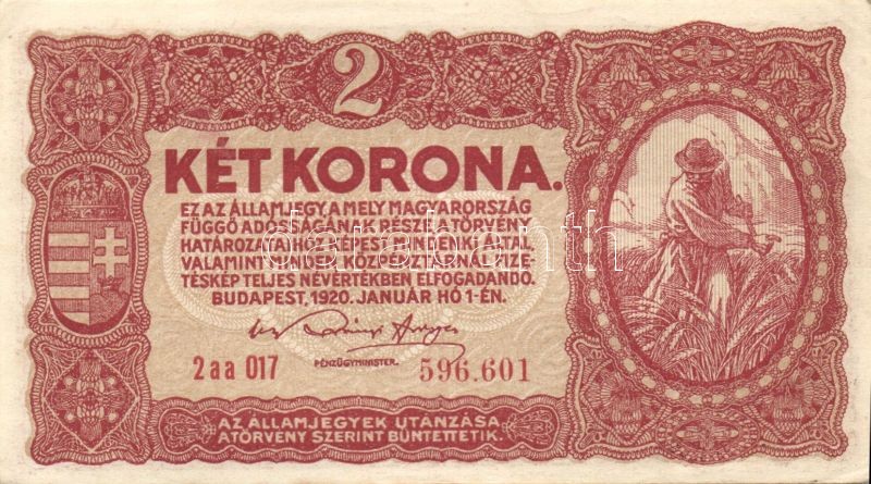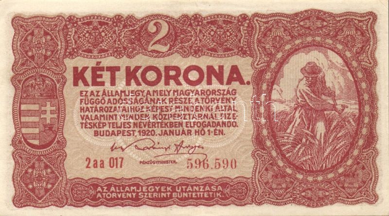1920. 2K "2aa" 6 sorszám (6x) köztük kis ugrású sorszámokkal T:I,II https://www.darabanth.com/de/130-Fernauktion/130.0/Numismatik/~875/1920-2K-2aa-6-sorszam-6x-koztuk-kis-ugrasu-sorszamokkal-TI-II~II367399