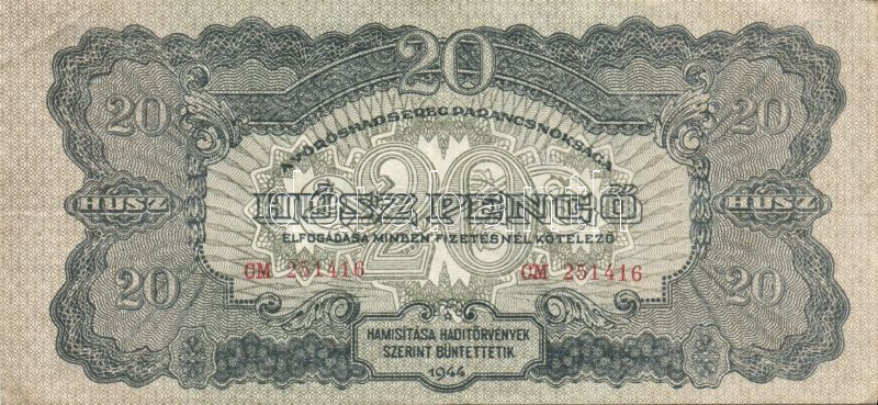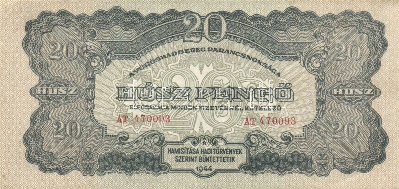 1944. 20P (3x) "Vörös Hadsereg" egyik vágási hibás (magassága kisebb) ... https://www.darabanth.com/de/130-Fernauktion/130.0/Numismatik/~875/1944-20P-3x-Voros-Hadsereg-egyik-vagasi-hibas-magassaga-kisebb-TI-I-~II368003