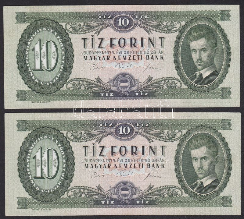 1975. 10Ft (2x) egymásutáni sorszámmal T:I https://www.darabanth.com/de/130-Fernauktion/130.0/Numismatik/~875/1975-10Ft-2x-egymasutani-sorszammal-TI~II368989