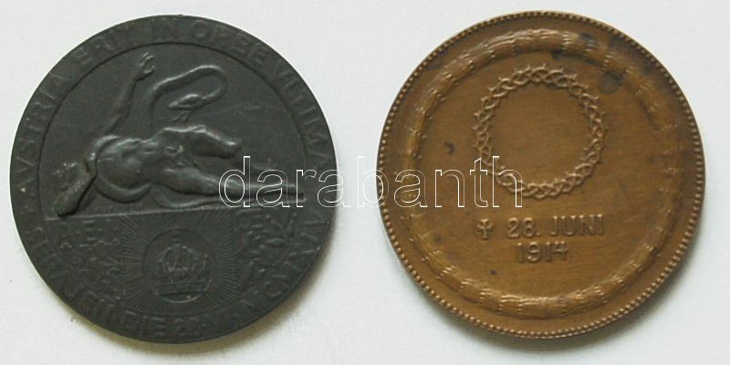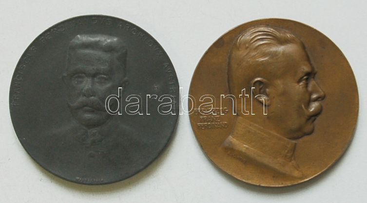 Beschreibung: 1914. Weinberger: Ferenc Ferdinánd Sarajevo hadifém emlékérme + Hartig: Ferenc Ferdinánd főherceg Br emlékérem / 50mm