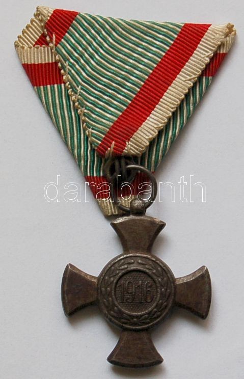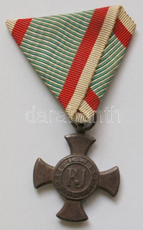 1916. Vas "FJ" érdemkereszt, a Vitézségi érem mellszalagjával! T:2 https://www.darabanth.com/de/130-Fernauktion/130.0/Numismatik/~880/1916-Vas-FJ-erdemkereszt-a-Vitezsegi-erem-mellszalagjaval-T2~II367692