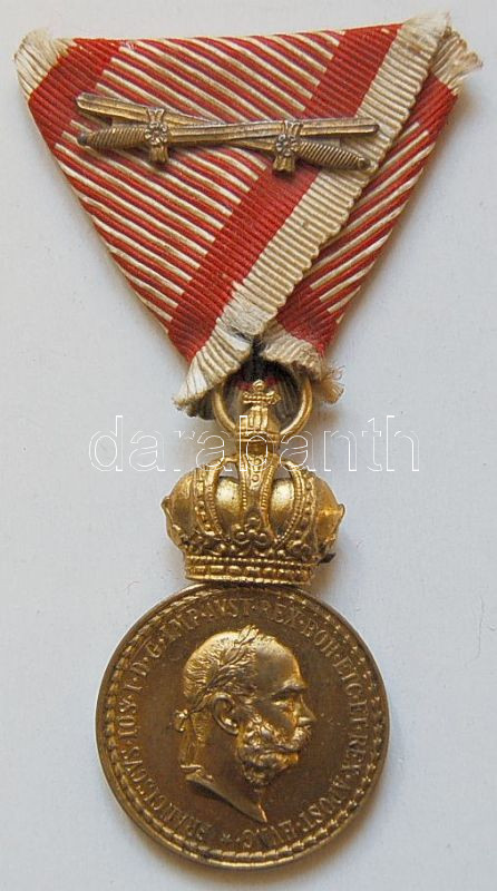 Beschreibung: Ferenc József Bonz Katonai Érdemérem hadiszalagon kardokkal! T:2
