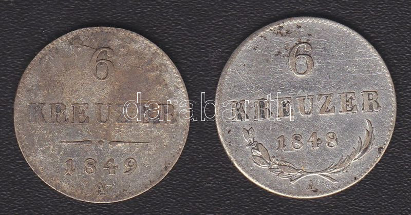 Ausztria 1848A 6Kr Ag T:2 +1849A 6Kr Ag T:3 https://www.darabanth.com/de/130-Fernauktion/130.0/Numismatik/~884/Ausztria-1848A-6Kr-Ag-T2-plus1849A-6Kr-Ag-T3~II371108