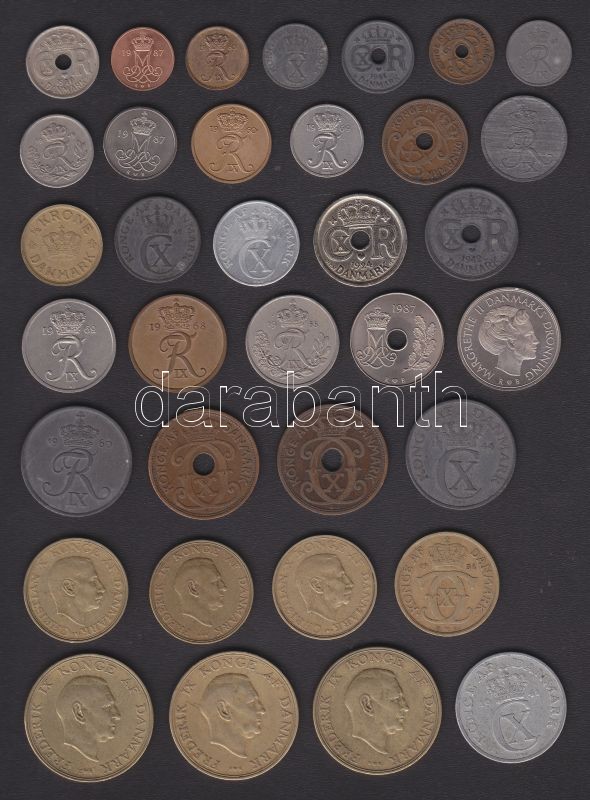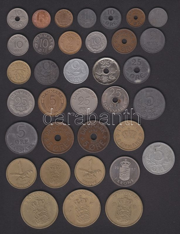 Dánia kis öre és korona tétel 35 klf pénzérme T:2,3 https://www.darabanth.com/de/130-Fernauktion/130.0/Numismatik/~884/Dania-kis-ore-es-korona-tetel-35-klf-penzerme-T2-3~II368234