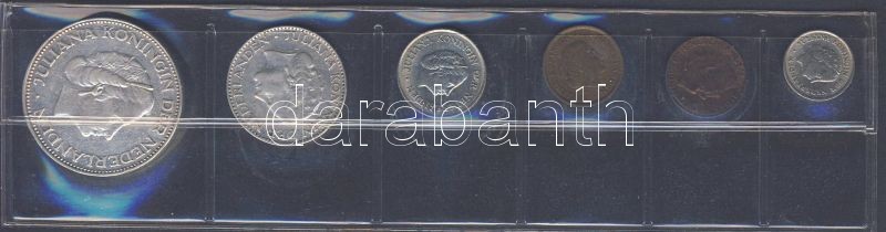 Beschreibung: Hollandia 1960. 2 1/2G Ag "Julianna" T:3+ ph., 1955. 1G Ag T:2-/3+, 1965. 25c T:2, 1962. 1c Br T:3+/3, 1948. 1c Br T:3+/3, 1965. 10c T:2 Szettben