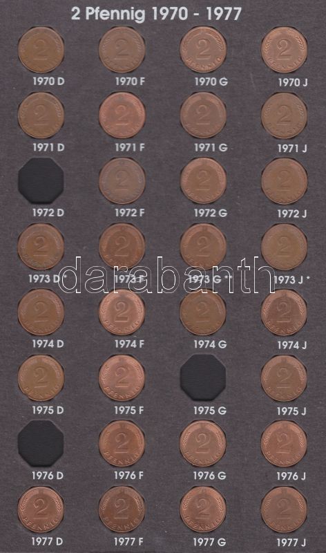 NSZK 1970-1977 29klf 2Pf T:1,2,3 dátum és verdejel szerint rendezve https://www.darabanth.com/de/130-Fernauktion/130.0/Numismatik/~884/NSZK-1970-1977-29klf-2Pf-T1-2-3-datum-es-verdejel-szerint-rendezve~II370219