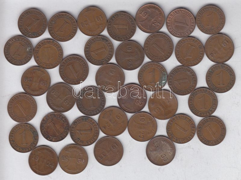 Németország/Weimari Köztársaság 1923-1936. 1Pf (37x) T:2,3 https://www.darabanth.com/de/130-Fernauktion/130.0/Numismatik/~884/NemetorszagWeimari-Koztarsasag-1923-1936-1Pf-37x-T2-3~II369593