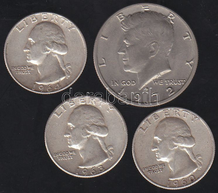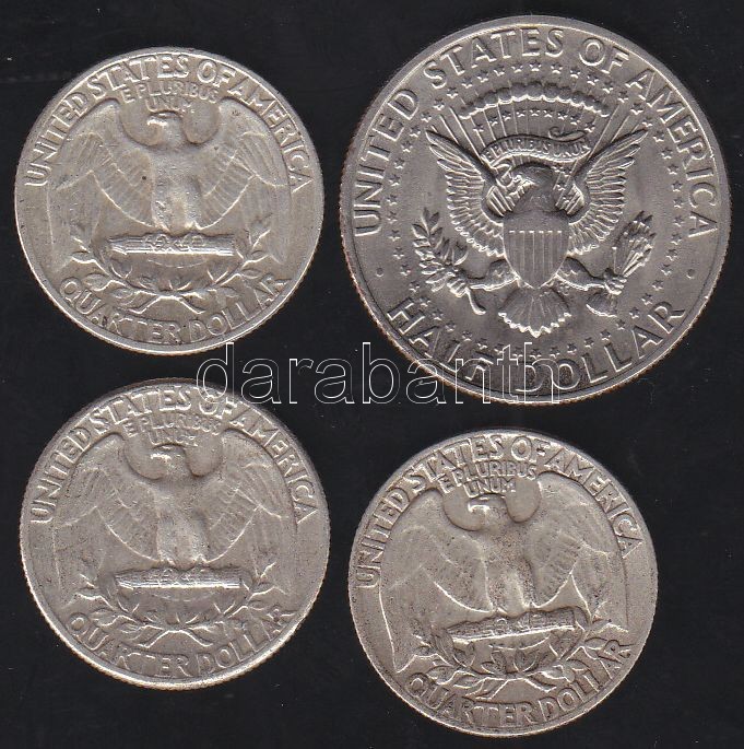 USA 1972D. 1/2$ + 1960-1964. 1/4$ (3x) Ag T:2,3 https://www.darabanth.com/de/130-Fernauktion/130.0/Numismatik/~884/USA-1972D-12USD-plus-1960-1964-14USD-3x-Ag-T2-3~II369341