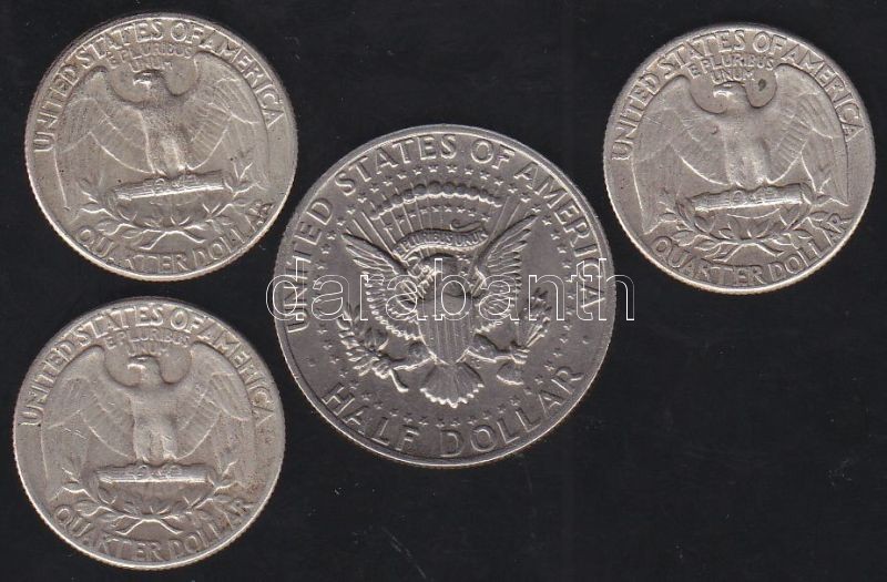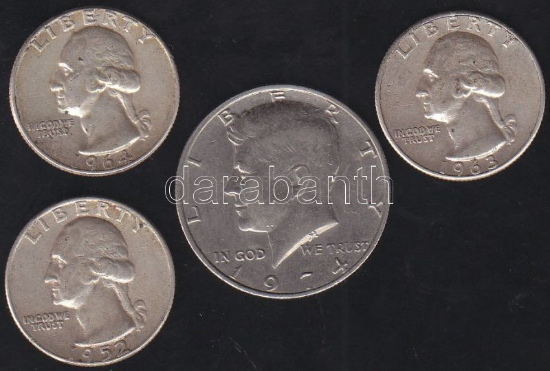 USA 1974. 1/2$ + 1952-1964. 1/4$ (3x) Ag T:2,3 https://www.darabanth.com/de/130-Fernauktion/130.0/Numismatik/~884/USA-1974-12USD-plus-1952-1964-14USD-3x-Ag-T2-3~II369339