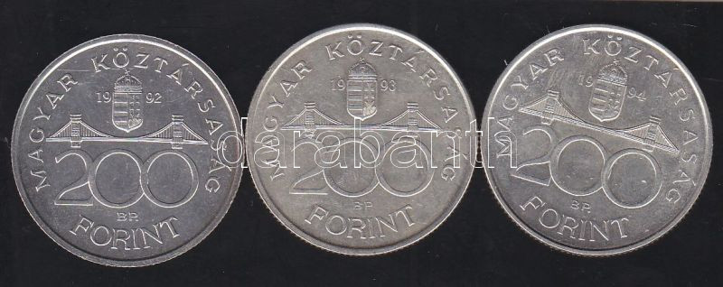 Beschreibung: 1992-1994. 200Ft Ag "MNB" (2x) + "Deák" T:1,2