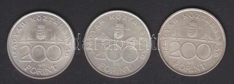 Beschreibung: 1993-1994. 200Ft Ag "MNB" (2x) + "Deák" T:2,2-