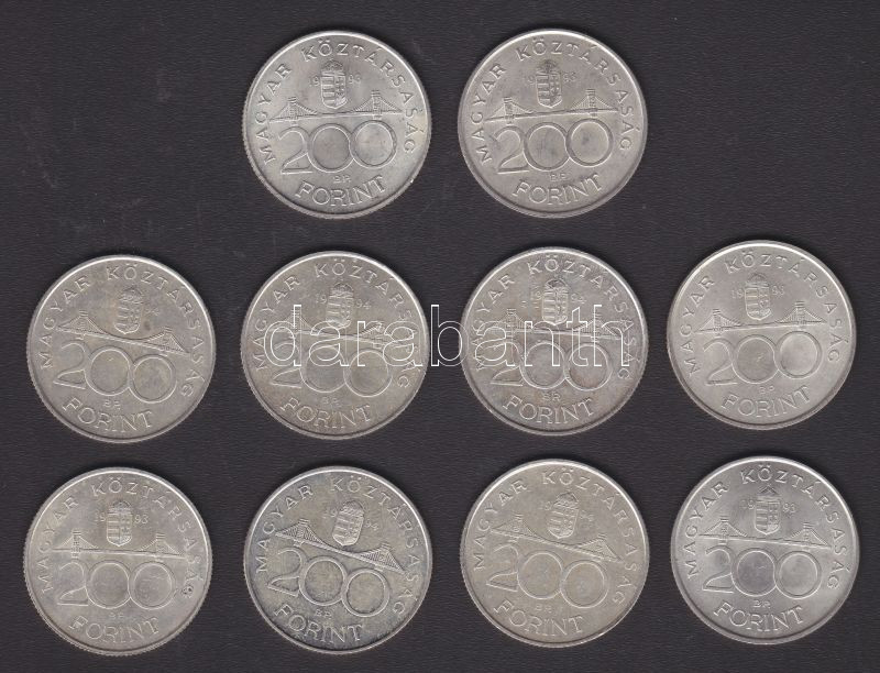 1993-94. 200Ft Ag "Deák" + "MNB" (10x) T:vegyes https://www.darabanth.com/de/130-Fernauktion/130.0/Numismatik/~885/1993-94-200Ft-Ag-Deak-plus-MNB-10x-Tvegyes~II371072