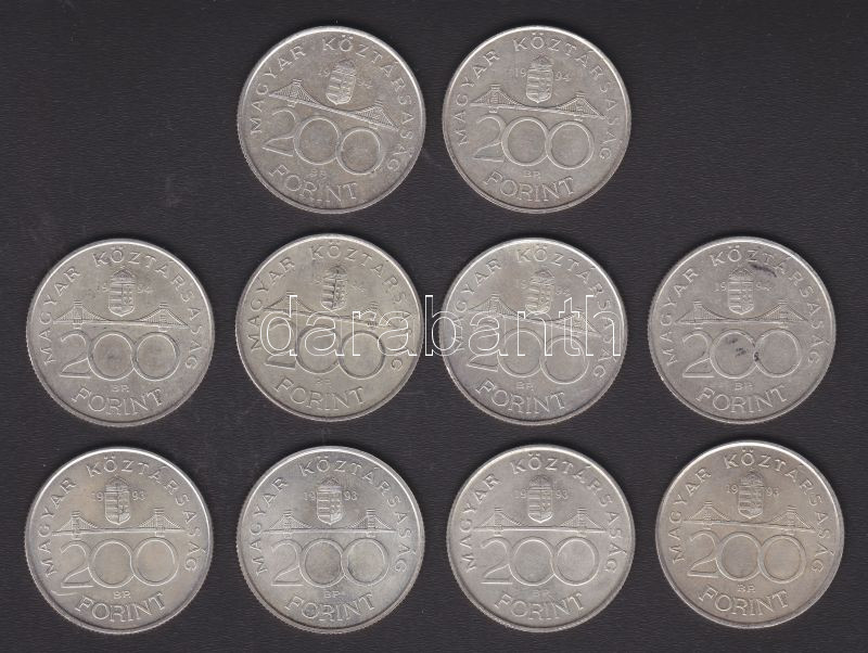 1993-94. 200Ft Ag "Deák" + "MNB" (10x) T:vegyes https://www.darabanth.com/de/130-Fernauktion/130.0/Numismatik/~885/1993-94-200Ft-Ag-Deak-plus-MNB-10x-Tvegyes~II371083