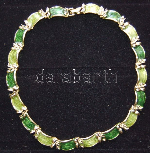 Beschreibung: Dekoratív aranyozott zöld kövekkel díszített nyaklánc