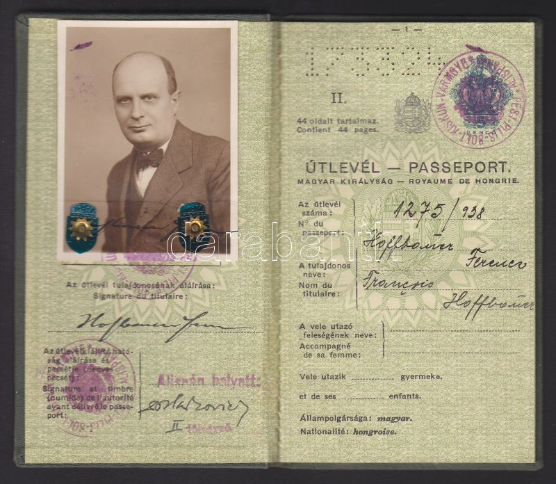 1938 Keményfedeles útlevél https://www.darabanth.com/de/131-Fernauktion/131.0/Andere-Sammelgebiete/~400194/1938-Kemenyfedeles-utlevel~II371740