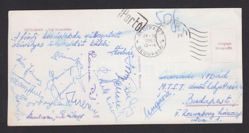 Beschreibung: 193 Az EB aranyérmes kosárlabda-válogatott játékosai és edzői által aláírt képeslap Csanádi Árpádnak
