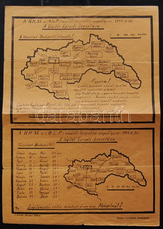 1944 A HM által kiadott légvédelmi napi tájékoztató / Air-defence dail... https://www.darabanth.com/de/131-Fernauktion/131.0/Andere-Sammelgebiete/~400203/1944-A-HM-altal-kiadott-legvedelmi-napi-tajekoztato-Air-defence-daily-information~II374556