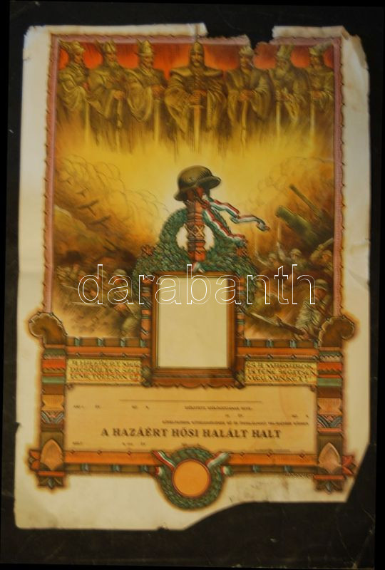 cca 1940 Hősi halotti oklevél s: Haranghy viseltes állapotban / Warran... https://www.darabanth.com/de/131-Fernauktion/131.0/Andere-Sammelgebiete/~400203/cca-1940-Hosi-halotti-oklevel-s-Haranghy-viseltes-allapotban-Warrant-for-death-on-the-field-d~II374330