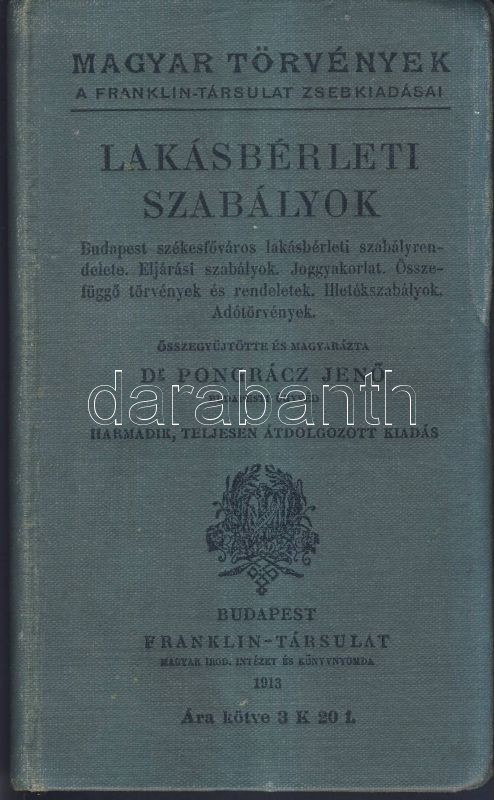 1913 Lakásbérleti szabályok Harmadik kiadás, Franklin Társulat kiadásá... https://www.darabanth.com/de/131-Fernauktion/131.0/Andere-Sammelgebiete/~400206/1913-Lakasberleti-szabalyok-Harmadik-kiadas-Franklin-Tarsulat-kiadasaban~II373887