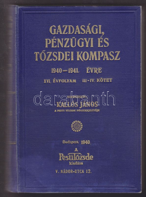 Kallós János: Gazdasági,pénzügyi és tőzsdei kompasz az 1940-1941 évre ... https://www.darabanth.com/de/131-Fernauktion/131.0/Andere-Sammelgebiete/~400206/Kallos-Janos-Gazdasagi-penzugyi-es-tozsdei-kompasz-az-1940-1941-evre-aranyozott-egeszvasz~II371650