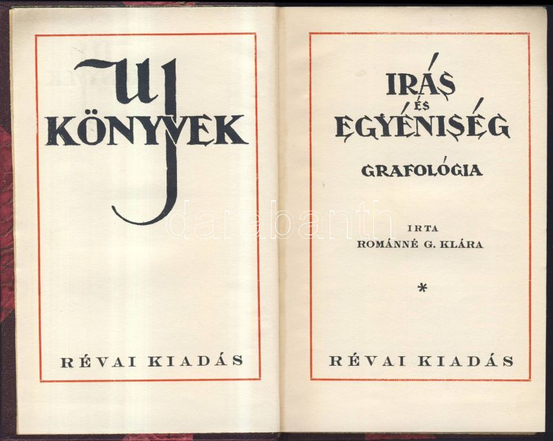 Románné Goldziher Klára: Írás és egyéniség. Grafológia Révai, Bp. 1925... https://www.darabanth.com/de/131-Fernauktion/131.0/Andere-Sammelgebiete/~400206/Romanne-Goldziher-Klara-Iras-es-egyeniseg-Grafologia-Revai-Bp-1925-kiadoi-aranyozot~II371651