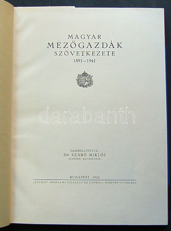 Szabó Miklós (összeáll): Magyar mezőgazdák szövetkezete 1891-1941 Jubileumi kiadvány gazdag képanyaggal, aranyozott kiadói félbőr kötésben, tékával (hibátlan állapotban)