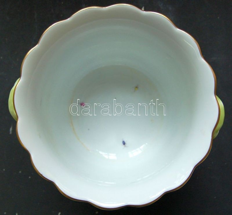 Óherendi kézzel festett gyümölcsökkel díszített porcelán kaspó arany peremmel 15 cm magas és 22 cm széles / Herend chinawase pot 15 cm high and 22 cm wide