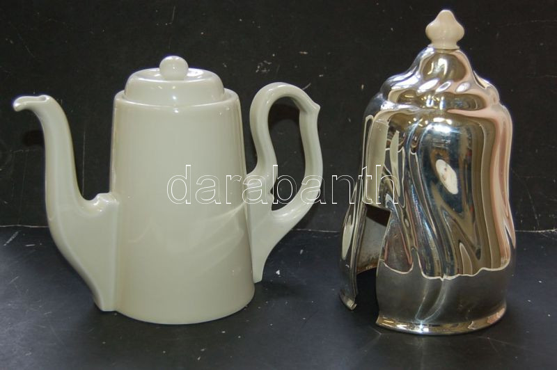Beschreibung: Régi porcelán teáskanna melegen tartó levehető fém köpennyel 26 cm magas