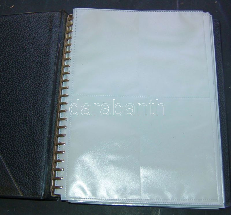 Beschreibung: 232 férőhelyes műanyag képeslapalbum gyűrűs borítóval