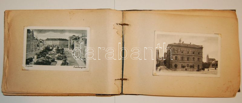 Beschreibung: Soproni képeslapgyűjtemény, benne 28 Sopron városképes lap a századfordulótól a 40-es évekig, köztük zsinagógás is, szép kivitelű korabeli albumban
