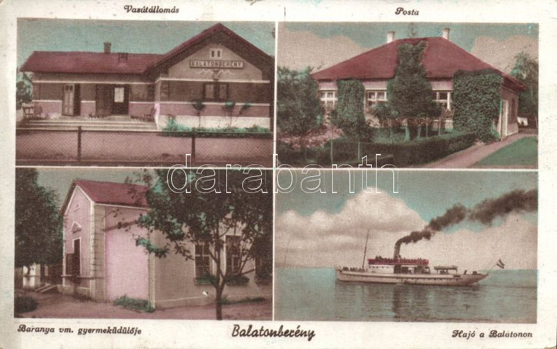 Beschreibung: Balatonberény Vasútállomással, postával és Baranya megye gyermeküdülőjével