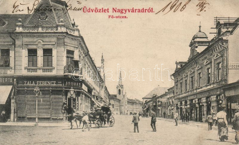 Beschreibung: Nagyvárad main street; the shops of Ferenc Zala, János Kádár, Károly Weisz