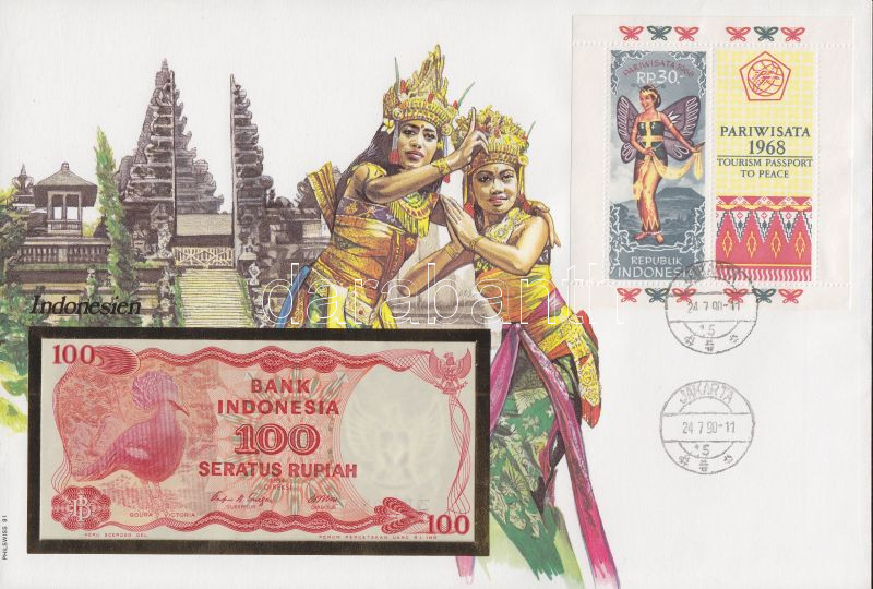 Indonézia 1984. 100R dekoratív, nagyalakú bankjegyes, bélyeges boríték... https://www.darabanth.com/de/131-Fernauktion/131.0/Numismatik/~400161/Indonezia-1984-100R-dekorativ-nagyalaku-bankjegyes-belyeges-boritekon-belyegblokkal-TI~II373088