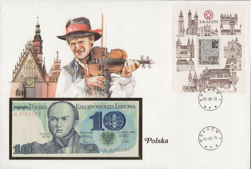 Lengyelország 1982. 10Zl dekoratív, nagyalakú bankjegyes, bélyeges bor... https://www.darabanth.com/de/131-Fernauktion/131.0/Numismatik/~400161/Lengyelorszag-1982-10Zl-dekorativ-nagyalaku-bankjegyes-belyeges-boritekon-belyegblokkal-T~II372851