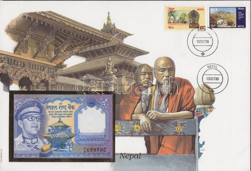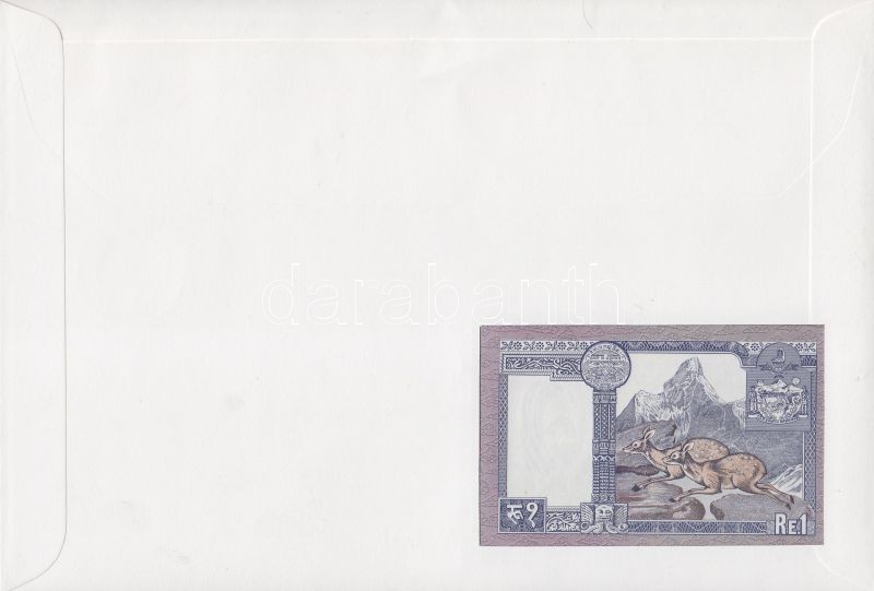 Nepál 1974 1R dekoratív, nagyalakú bankjegyes, bélyeges borítékon T:I https://www.darabanth.com/de/131-Fernauktion/131.0/Numismatik/~400161/Nepal-1974-1R-dekorativ-nagyalaku-bankjegyes-belyeges-boritekon-TI~II373083