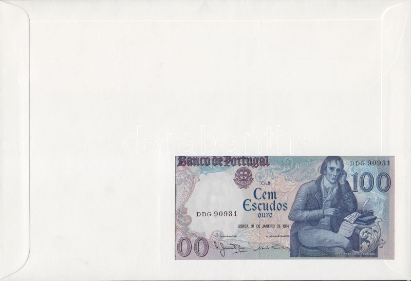 Portugália 1984. 100Esc dekoratív, nagyalakú bankjegyes, bélyeges borí... https://www.darabanth.com/de/131-Fernauktion/131.0/Numismatik/~400161/Portugalia-1984-100Esc-dekorativ-nagyalaku-bankjegyes-belyeges-boritekon-belyegblokkal-a~II372862