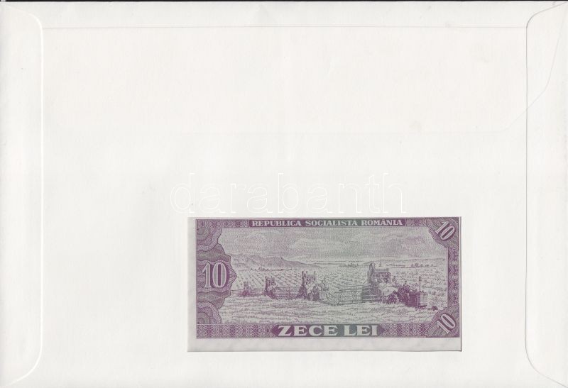 Románia 1966. 10L dekoratív, nagyalakú bélyeges, bankjegyes borítékon,... https://www.darabanth.com/de/131-Fernauktion/131.0/Numismatik/~400161/Romania-1966-10L-dekorativ-nagyalaku-belyeges-bankjegyes-boritekon-belyegblokkal-TI~II372869